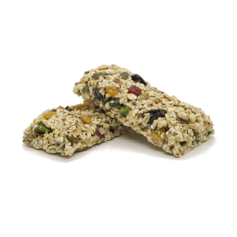 Συστατικά: Αλεύρι σίτου, ζάχαρη, γλυκόζη, φυτικά λιπαρά, ηλιόσπορος, φυστίκι πίνατς, σουσάμι, νιφάδες βρώμης, κοκτέιλ φρούτων, κολοκυθόσπορος, αμυγδαλόψυχα, σταφίδα, λιναρόσπορος, νιφάδες κριθαριού, γάλα, μέλι, αρώματα.